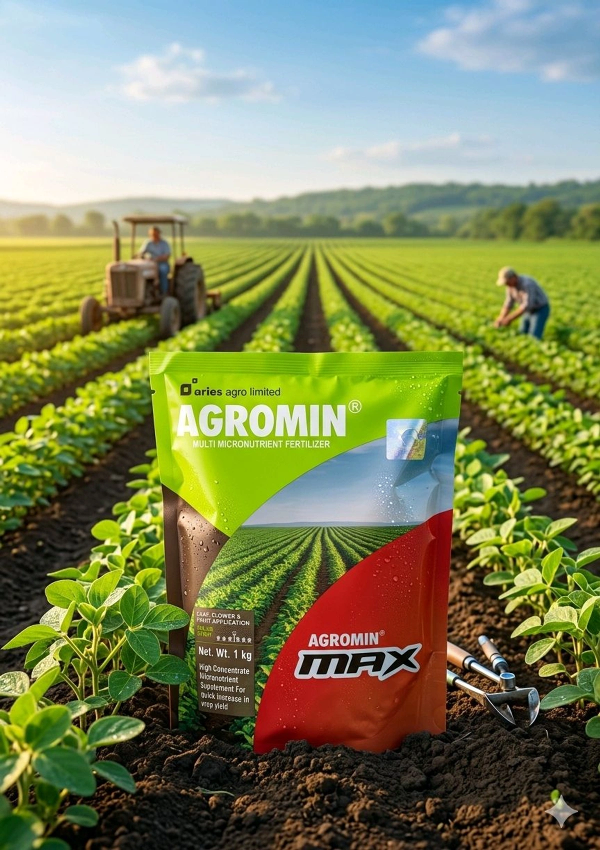 Aries Agromin Max, available at Kheti Haat, is your ultimate solution for healthier, high-yielding crops. This premium-quality, spray-dried, and 100% water-soluble micronutrient powder is expertly designed to address nutrient deficiencies and empower your farm to thrive. Packed with a balanced blend of essential micronutrients—zinc, iron, manganese, boron, copper, and molybdenum—Agromin boosts photosynthesis, enhances enzyme activation, and maximizes yield like never before.