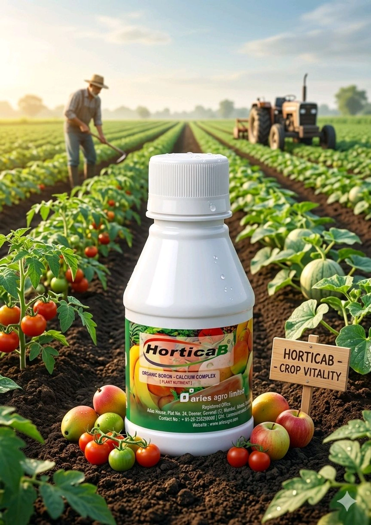Aries Horticab, available at Kheti Haat, is a premium liquid Boron-Calcium complex fortified with organic nitrogen. Specially designed to address critical plant needs, this advanced formula works wonders in hydroponics, greenhouses, and field crops like fruits, vegetables, and flowers. Whether you're a seasoned grower or just starting out, HORTICAB is the secret to healthier plants, improved yields, and top-quality produce.