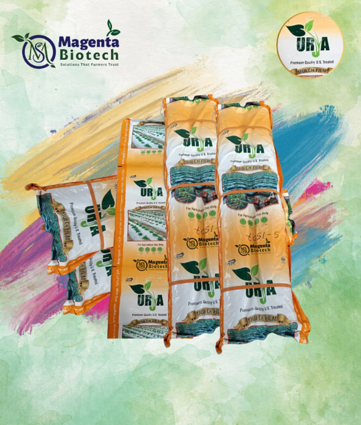 Urja Mulching by Magenta Biotech is a premium-grade mulch film made from UV-stabilized LLDPE with carbon black for long life and weather resistance. It helps retain soil moisture, suppress weeds, and regulate soil temperature, ensuring better crop health and yield.